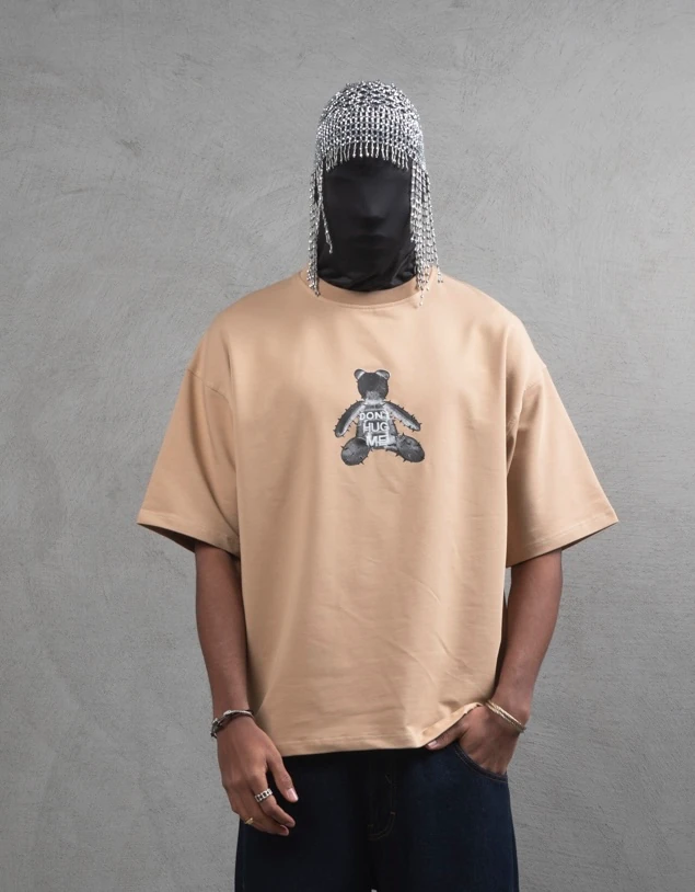 Maksim Oversize Nakış Desenli Tişört | 10086 - Beige