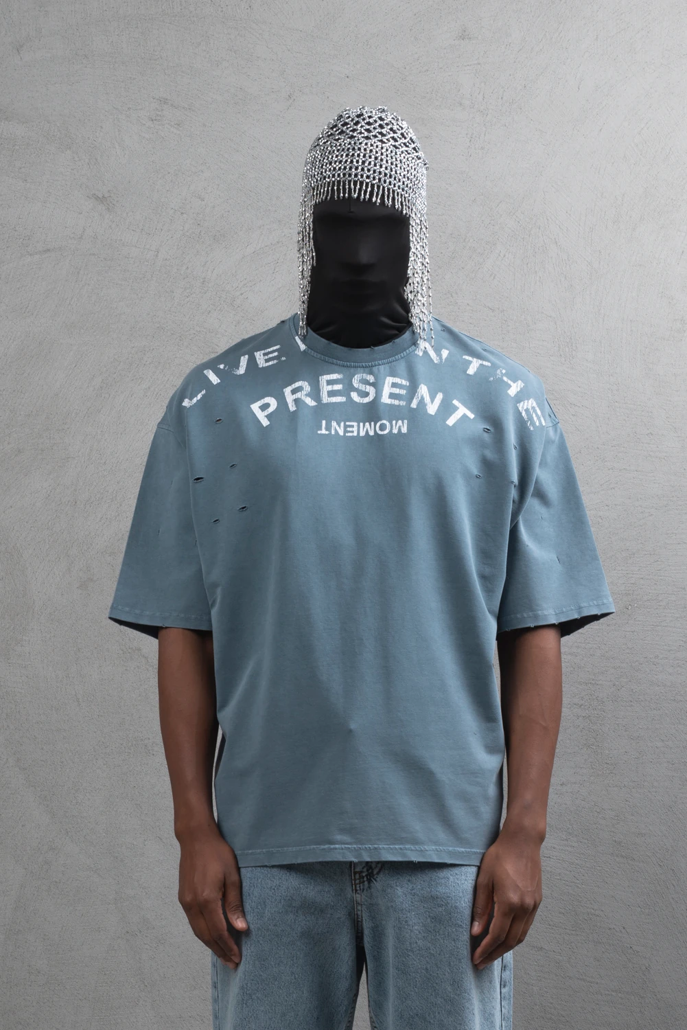 Maksim Oversize Yazı Baskılı Yıkamalı Tişört | 10032 - Buz Mavi
