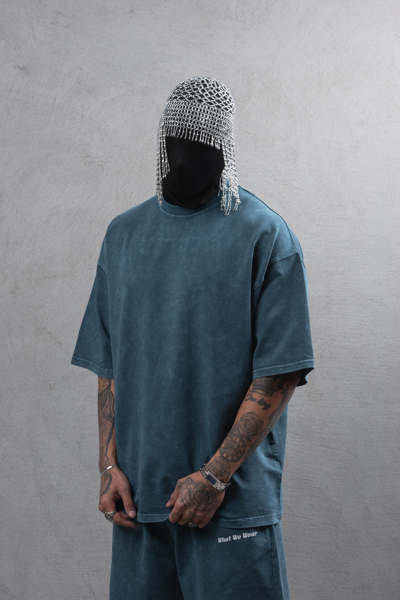 Maksim Tablet Yıkamalı Oversize Polo Yaka Tişört | 10028 - Buz Mavi